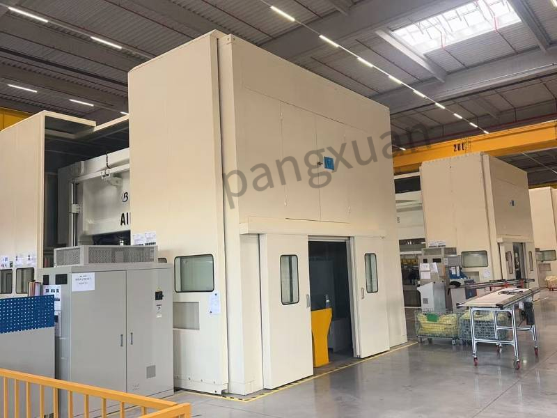 隔音箱總體采用折壓鋼板夾層80mm厚吸隔音墻體組合式結構。